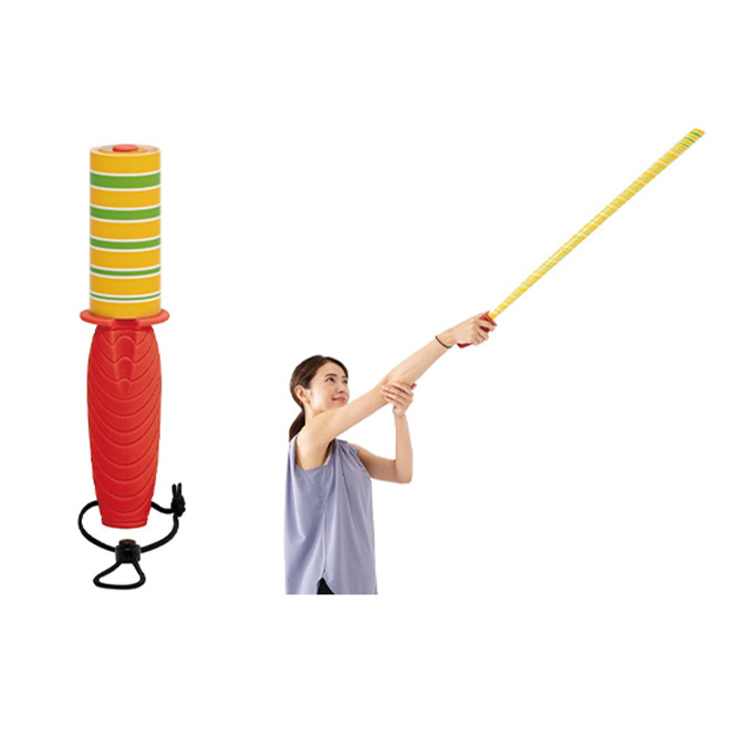 振るだけの二の腕トレーニングアイテム - 斜め上に振ると約1m伸びるペーパーヨーヨー構造で、思わず振りたくなる楽しい見た目