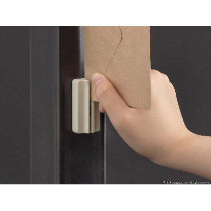 - 持ち手にはマグネットシートが付属しているため金属製のクリップなどを貼り付けておくことができます。