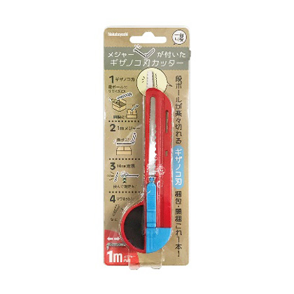- 1mメジャー、10cm定規内蔵など梱包開梱に必要な便利機能を搭載した段ボールカッター。