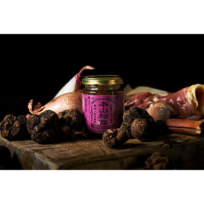 - ヒマラヤ山脈で採取された天然の黒トリュフと、相性の良いエシャロットを合わせ、米油に漬け込んで旨みをぎゅっと閉じ込めた。