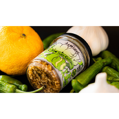 - 本来の柚子胡椒の原材料である柚子・唐辛子・塩はそのままに、ネギ油・にんにく・いりごまなどを追加し完成した独自レシピのネオ柚子胡椒。