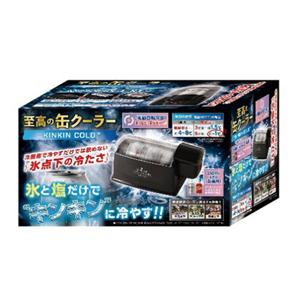 - ビールやジュースなどの缶飲料を氷と塩を使って電動回転冷却。たった5分で、冷蔵庫で冷やすだけでは飲めない氷点下の冷たさに!