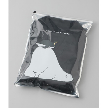 - 夏場に化粧水やパックを冷蔵庫で冷やすように、「眠るときに肌に触れるパジャマも、冷やしてから着てみては?」という大日方さんのユニークなアイディアから生まれたパッケージデザイン。シロクマとペンギンのイラストが入ったスライドジッパー袋を採用し、“パジャマを冷蔵庫に入れて冷やす”という新習慣をご提案するデザイン。
