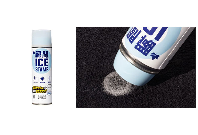 - 濡らしたタオルやハンカチに直接プッシュするだけで、氷のスタンプができ冷却タオルとして使えるアイテム。