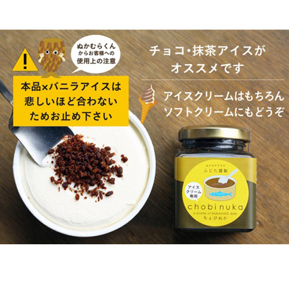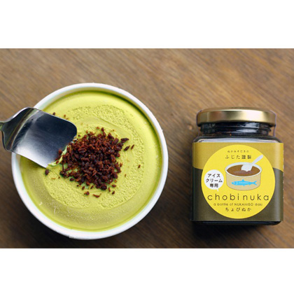 - ぬかみそだきは福岡県北九州市小倉の郷土料理。この「アイスクリーム専用ちょびぬか」はイワシのぬかみそだきをフレーク状にして、アイスクリームとの相性を考え、作った商品。