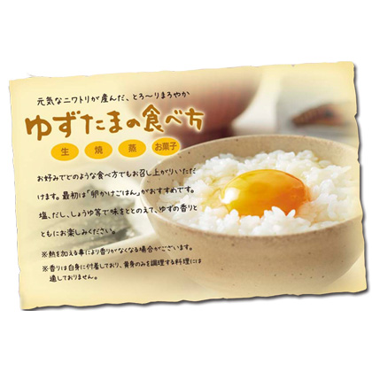 - ほのかにゆず風味がすることで、卵臭さが無くなり雑味がなくすっきりと美味しい卵に。