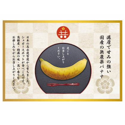 - 糖度が非常に高く、一般的なバナナの約15度をはるかに超え、香りもよく、口当たりも芳醇な甘さに満ちた贅沢な一品。
