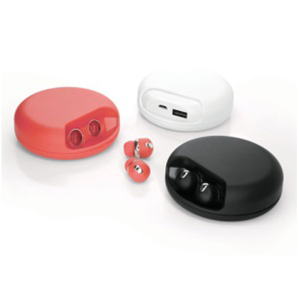 - モバイルバッテリーを搭載し、ポップなフォルムのバッテリーケースが特長の 超小型・軽量完全ワイヤレスイヤホン。(Bluetooth接続)