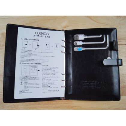 - USBメモリーも付属。手帳の開閉部分に付属しているので、使う時だけ取り外し、使わないときは収納しておくことができる。