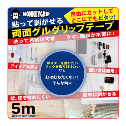 - 「Monkey Grip」は必要な長さにカットして壁や床にアイテムを貼りつけられるゲルグリップテープです。