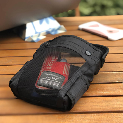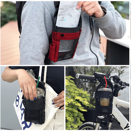 - キャリーバッグやリュックなど様々なところへ取り付けでき、ドリンクを収納してどんな方向に動かしても独自の機構によってドリンクがこぼれない。