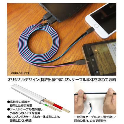 - 一般的なケーブルより引っ張り、屈曲に優れ丈夫で長持ちする。