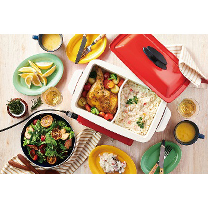 - 「味のちがう2種類の鍋料理を楽しみたい」「食材とソースを同時につくりたい」「片方を保温にして、ゆっくり調理したい」ときなどに便利。