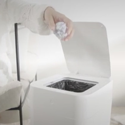 - ごみ箱はここまで進化!ワンタッチでゴミ袋の口を閉じ、新しいゴミ袋まで自動セット!