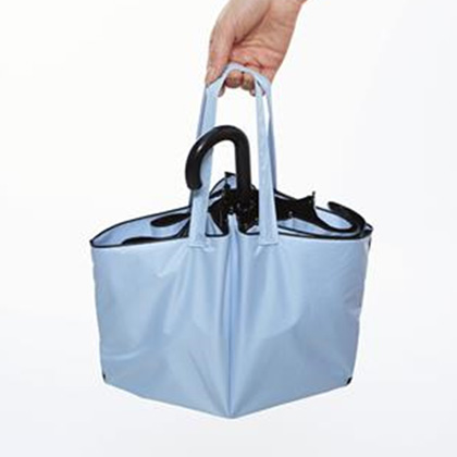 - 折りたたみ傘に内蔵したポケット部分を傘を閉じてひっくり返すとバッグに変身。
