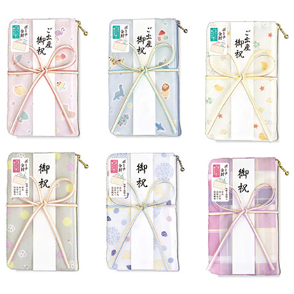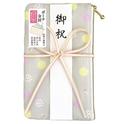 - 御祝金にプラス!本体が花や水玉柄のポーチになっています。御祝として贈った後、ポーチとして再利用。