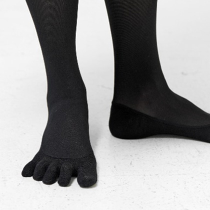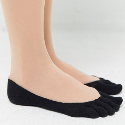 - 5本指フットカバーとストッキングのいいとこ取り!バレエシューズやパンプスの履き口から見えないようこだわった、一体型ハイソックス。むれを軽減し、靴の中はいつも快適。