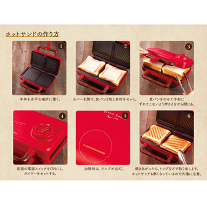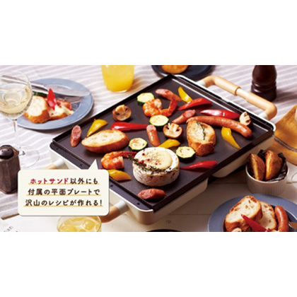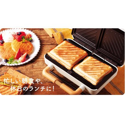- 食パンと食材をはさんで電源をいれるだけ。おいしいホットサンドを手軽に作ることができるホットサンドメーカー。(2枚同時に作れる。)