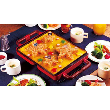 - また、平面プレートに取り替えれば、大きく使えるホットプレートのように使うことができるので、みんなでテーブルを囲みながら、さまざまな調理を楽しむことができる。