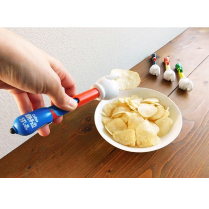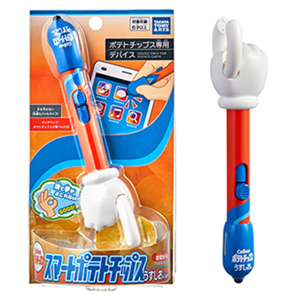 - ポテトチップスを食べられるタッチペン。2010年に発売されたポテトチップス専用マジックハンド『ポテチの手』を現代風にリニューアルした商品。※当時累計30万個以上を販売する大ヒット商品。