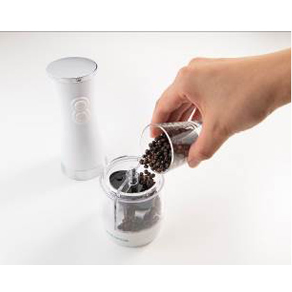 - 塩もコショウも引き立てで場所いらず!ボタンを押したら作動、離したら止まる!