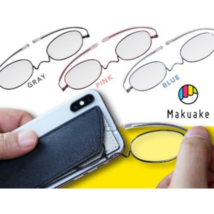 - 厚さ2mm。フレームは3色(ブルー、ピンク、グレー)。レンズは6段階(+0.5~3.0)、ブルーライトカットレンズもあり。