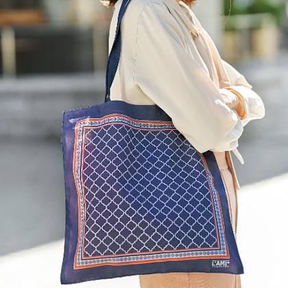 - 仕事帰りの寄り道買いで、エコバッグを忘れてガーン。家にあるのに~とレジ袋をもらうあの心苦しさをなんとかしたくて考えられたのが、このスカーフ柄バッグ。