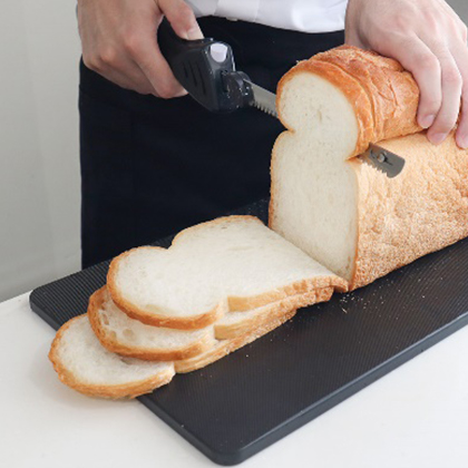 - 焼き立ての食パンや固いバケットをパン切り包丁で切るのはとても大変!電動で食材をスパッとカットできるコードレス電動包丁。