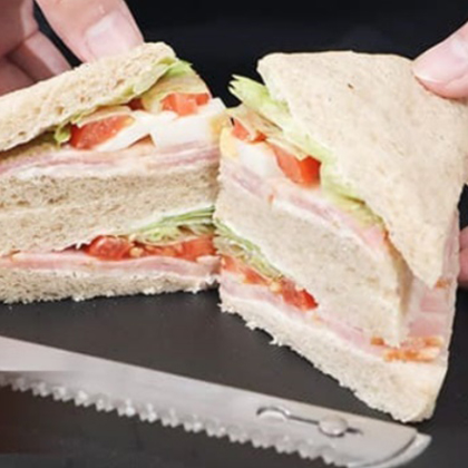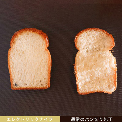 - 2枚の刃が合わさり電動で交互に動く仕組みになっていて、柔らかいパンやお肉もスパッと切ることができる。断面がボロボロになって美味しくなくなったり、モタついて冷めてしまうことを防いでくれる。