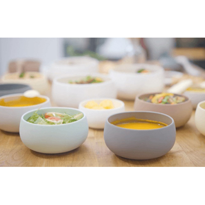 - 食器の能力を再定義するため誕生したシリコン製の食器。1つのボウルで多種多様な料理の準備、調理、そして提供までをカバーすることが可能。