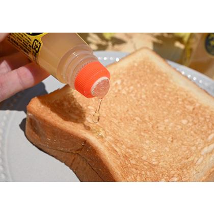 オリジナルの液状のりと同じく快適な“塗り心地”がポイント。 - 使用時に手が汚れないのはもちろん、トーストやパンケーキにムラなく蜂蜜を塗ることが出来る。