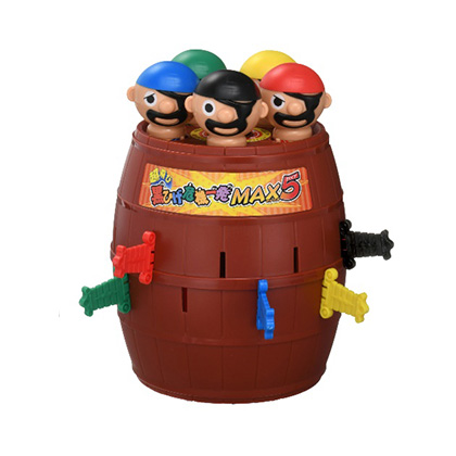 - これまでの「黒ひげ危機一発」同様、順番にタルの穴に剣を刺し、タルの中の「黒ひげくん人形」を飛び出させた人が負け。シンプルなルールに加え、5つの遊び方ができる。