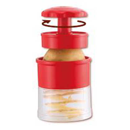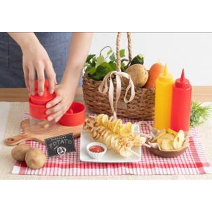 - 話題のぐるぐるなが~いポテトがおうちで作れる!本体にじゃがいもをセットしてハンドルを回すと、らせん状にポテトがカットできちゃう!