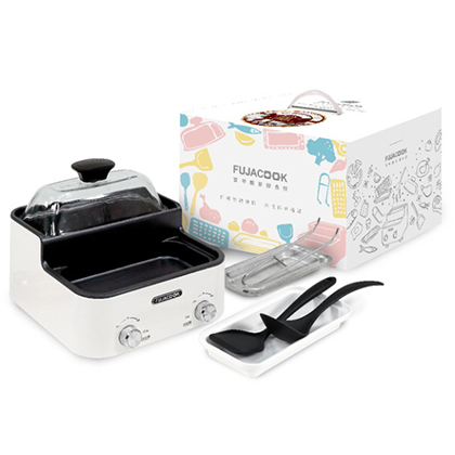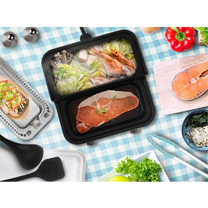 - 鉄板焼き、中華鍋、スープ鍋、すき焼き鍋、蒸し鍋、焦げ付き防止鍋のすべてがこの一台に!