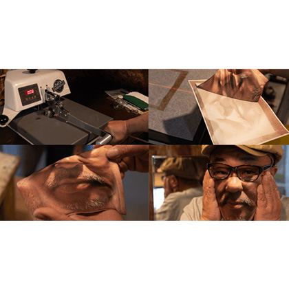 - そっくりさんマスクは特殊な印刷で発色よくインクのひび割れがなし。画像データをそのまま転写しているので、肌の細やかな質感やグラデーションを限りなく正確にプリント。