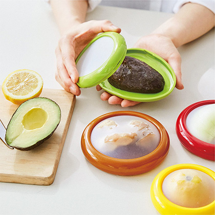 - ふたについているシリコンが中身に合わせて伸び縮みするため、ラップでいちいち包むより楽チンで、洗って使えるのでエコにも◎