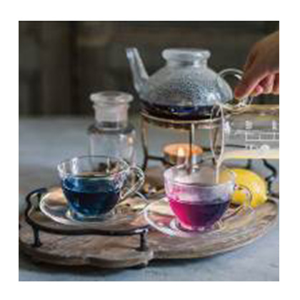 レモンの汁を加えると3種類の茶葉が水色からピンクへ、青から紫へ、緑から赤へ、それぞれ色が変化! - ぽたりと一滴たらすごとに色が変わる様子は、まるで魔法にかかったよう!