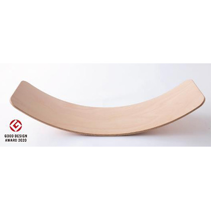 天然木の肌触りが心地良く、裸足で乗りたくなる優しい印象。耐荷重が約120kgありながら体重量は2.2kgと軽量で、仮に倒れても子供に危なくない。舐めても安全な塗料で施され、耐久性もあるため、世代を超えて使える道具。 - 上にのってヨガをしたり、体を伸ばしたり腕立てしたり、全身の運動ができる魔法の板。