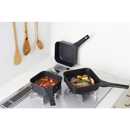 ⇒キッチン周りの空いたスペースにすっきり収納が可能、洗った後も場所を取らない - 四角にすることで、調理面積が丸に比べて広くなり具材をより多く調理できる