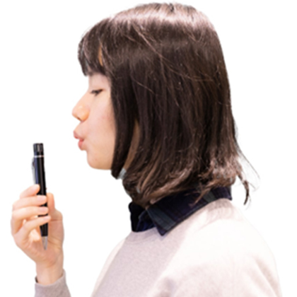 ⇒本体上部の吹き口に向かって息を吐くと口臭レベルを計測 - 0(弱)~4(強)までの5段階の数値で口臭レベルを判定し表示