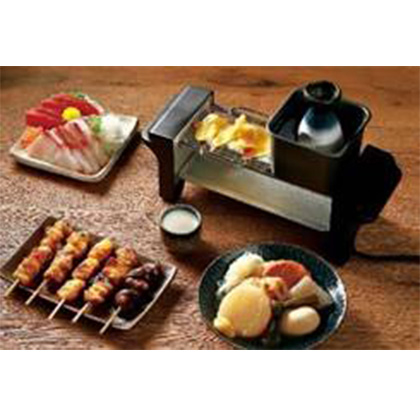 - 火を使わず、電源スイッチを押すだけの簡単操作。 安心して卓上でアツアツの肴を楽しめます。