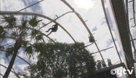 動物園を上空から見学できるアトラクション。自分でロープを手繰って前に進み、身一つで上空にいると不思議な感覚に…まさに鳥になった気分で動物園を楽しむことが!?