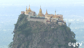 バガンの南東約50kmのポッパ山のふもと、標高約737mにある岩峰には、ミャンマーのナッ信仰の聖地、“天空の寺院” 「タウンカラット」が!