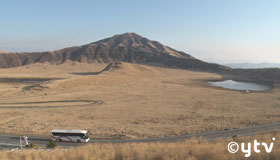 ・阿蘇といえば阿蘇山!阿蘇山の中岳を望む、絶好のロケーションが魅力の草千里へ!直径1キロにもおよぶ大草原には牛や馬が放牧されており、熊本の大自然を満喫!