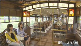 ・「16世紀に天草に伝わった南蛮文化」をテーマにデザインされた今人気の観光列車「A列車でいこう」へ乗車し、天草方面へ!