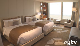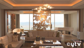最高級リゾート型ホテルの客室と施設を備えたコンテンポラリーラグジュアリーホテル。芸術的な風格とゆとり「プレジデンシャルスイート」は、2つのベッドルームにリビング、ダイニングなど様々な用途に使える部屋があり、広さはなんと、368㎡(約110坪)で1泊100万円のお部屋。