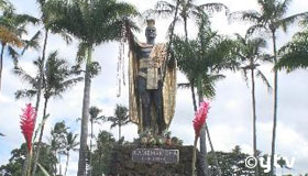ハワイ王国を建国した王、カメハメハ1世の銅像で観光スポットに!ハワイにはヒロの他に、ハワイ島カパアウとオアフ島ホノルルにも設置されています。