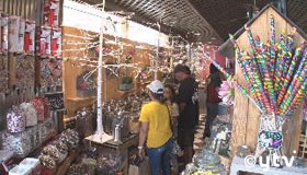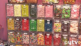 定番のモノから一風変わったモノまで!様々な商品が量り売りで買えるキャンディショップ。カラフルなキャンディだけでなく、チョコレートやグミが所狭しと並び、甘い香りが店内に広がります。