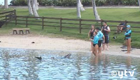 ホテルの敷地内にある海水ラグーンで、イルカと直接触れ合えるプログラムが楽しめます。