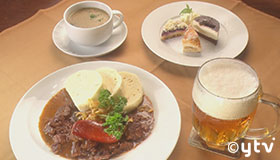 プラハで大人気のレストラン!「グラーシュ(ビーフシチュー)」や、「ポーク・シュニッツェル(カツレツ)」、川魚料理「カワカマスのグリル」など、様々なチェコの名物料理を堪能できます!